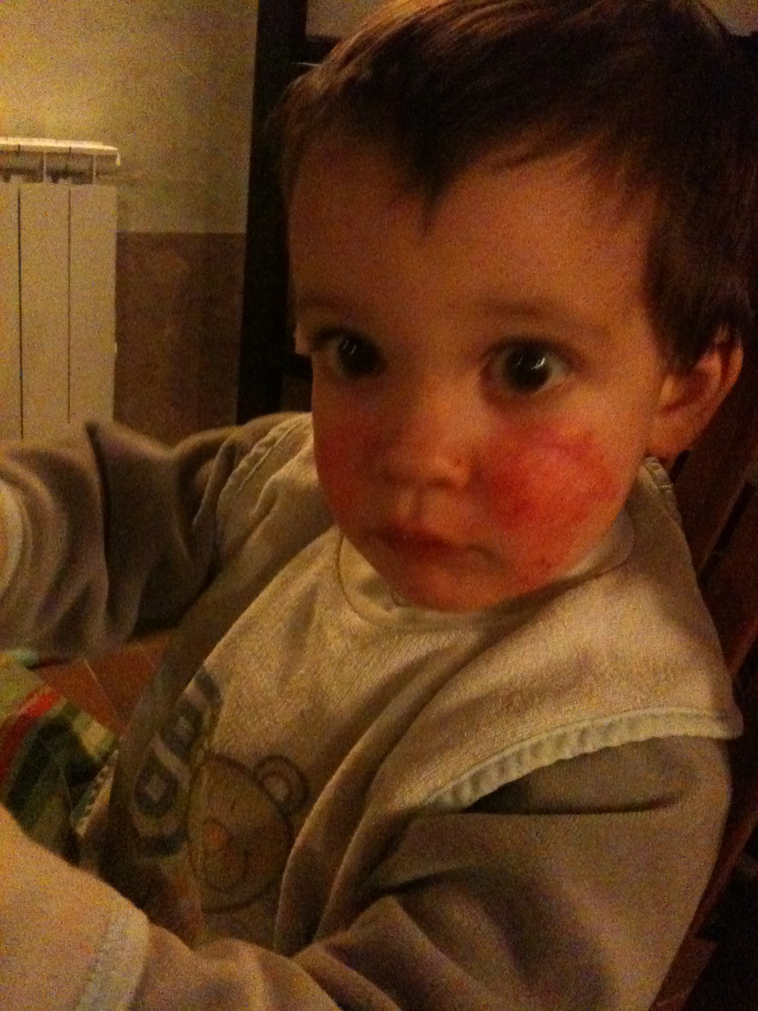 1. oh ! mon p’tit lou quand je vois ta joue ça me rappelle mon urticaire géant quand j’étais petite j’espère que tu ne seras pas comme mamie ………