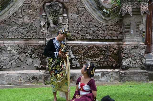 Reprise de la voiture pour une grosse partie de route, nous montons vers le Mont Batur pour l’ascension prévue dans la nuit prochaine (soit du 4 au 5 mars) Nous nous arrêtons tout de même pour visiter un temple, et la chance nous sourit, un mariage se prépare… J’ai trouvé les « costumes » fort sympathique, mais suis un peu « choquée » de voir que personne n’est là, juste un photographe et 2 ou 3 amis, pas de famille, rien… Guzman nous ré-explique la tradition mais cela serait un peu long à vous expliquer ici donc je la garde pour nous 😀