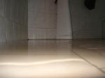 Je redescends, installe mon bureau, prend mon café, vaque à mes occupations et puis… Je remonte genre 1h15 après pour faire je sais pas quoi… et là le DRAME, quand j’arrive sur le pallier de la salle de bain c’est remplie d’eau, et je vois l’eau passer sous la porte…. Je pousse la dite porte de Salle de Bain, et là c’est juste dramatique, j’ai 5cm de flotte PARTOUT au sol… Je me jette sur la machine à laver pour l’arrêter comme une mal-propre, j’attrape au passage 3 – 4 serviettes de douche que je lance par terre en me disant « aie aie aie ça va être coton à sécher tout ça »