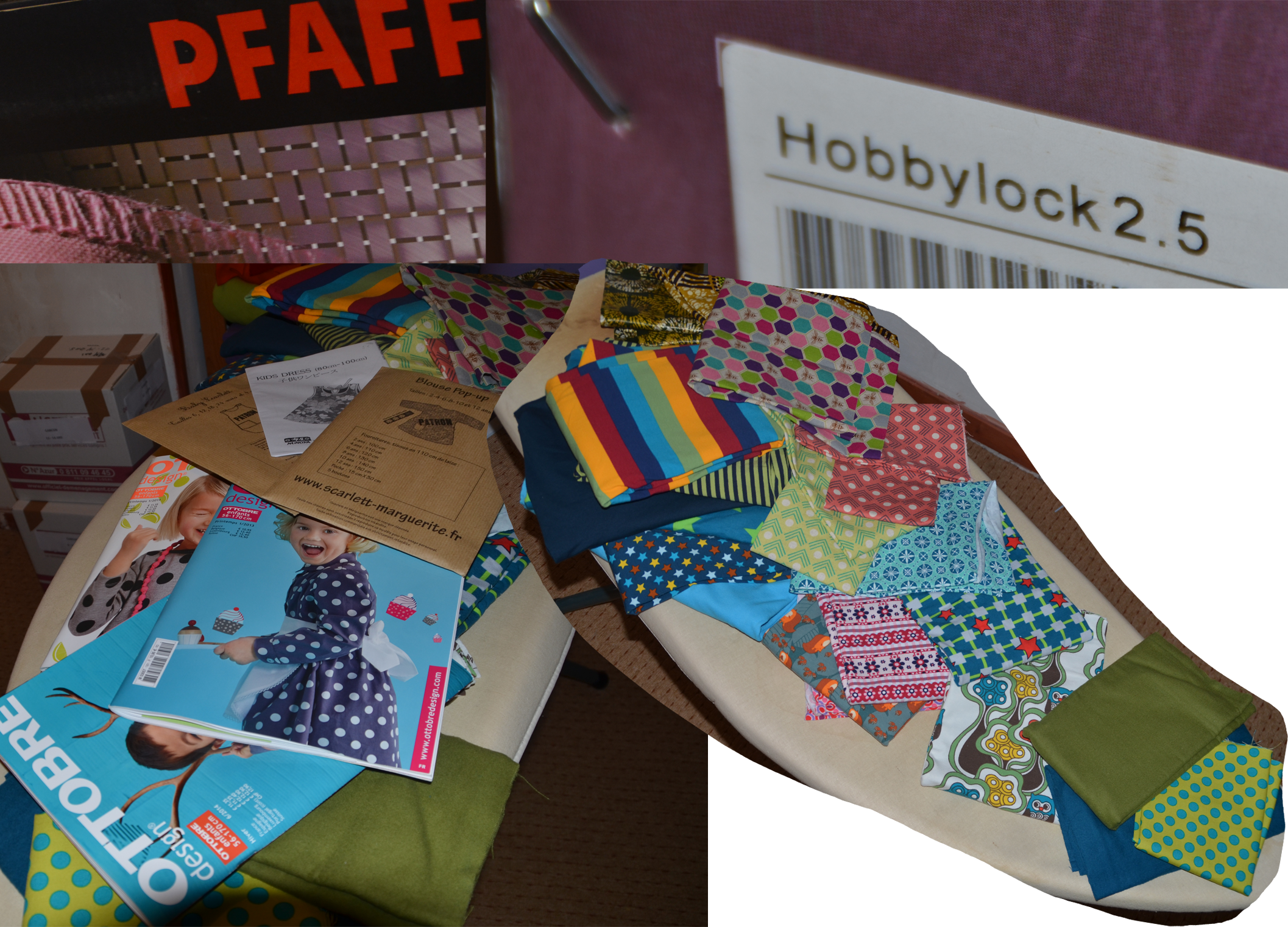 Oui oui en fond de photo c’est bien une surjeteuse PFAFF que j’ai réussi à avoir à prix salon…