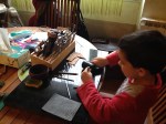Le travail du cuir lui fait toujours autant d’effet. Il se débrouille bien en plus 🙂