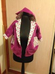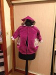 Léonie l’a essayé ce matin, c’est un peu grand (bah oui hein 3 ans) mais ça va le faire… Elle est très jolie dedans et elle a bien aimé la capuche 🙂