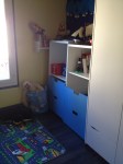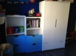 J’ai agrémenté le tout de petites panières de rangement qui pour le moment sont vides, mais là il a de l’espace, du rangement, les livres sont bien rangés à sa portée, j’attends sa réaction ce soir…
