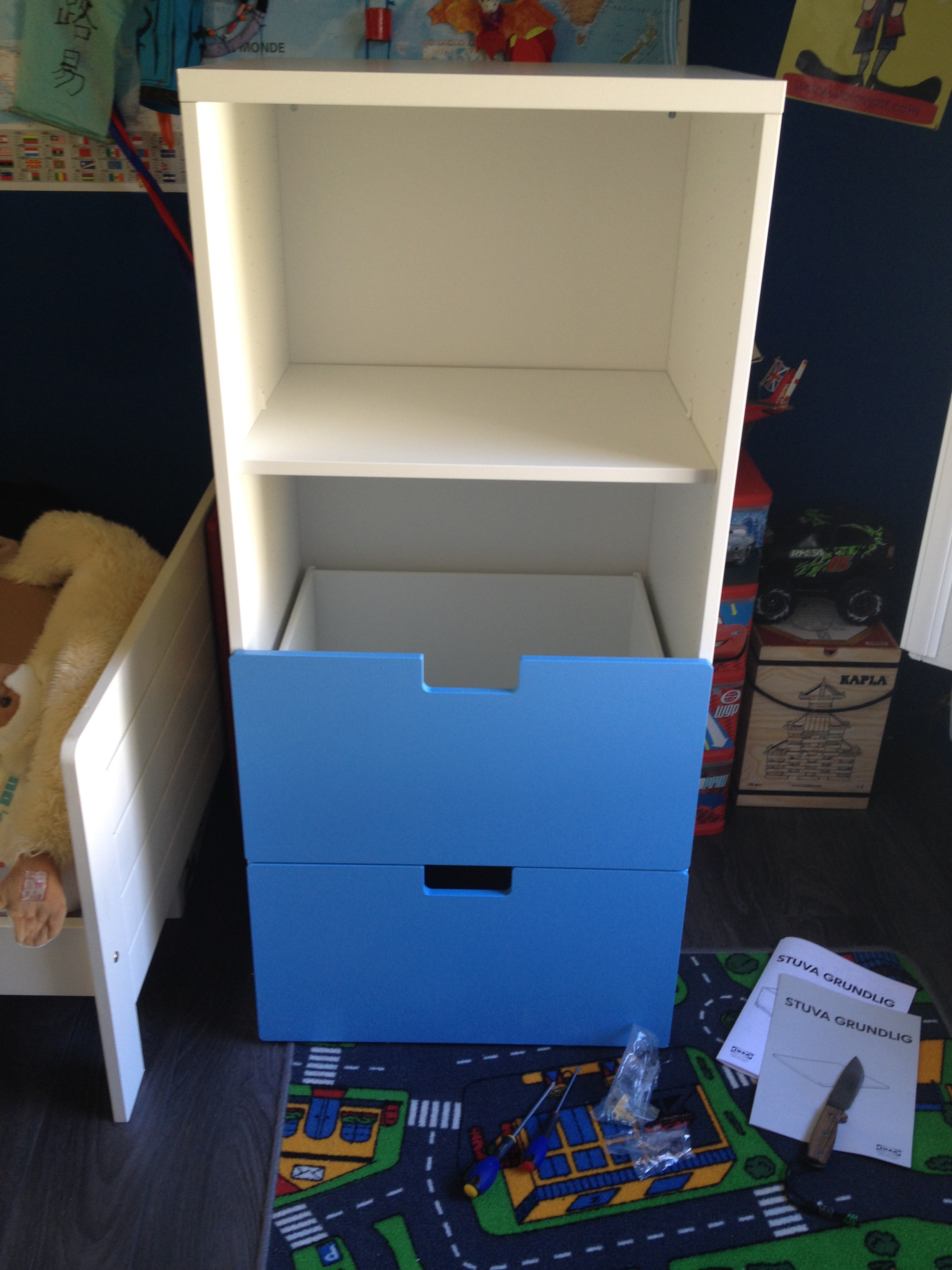 Bref Louis a été adorable il a fait un gros gros tri, Léonie jouait à côté de nous, ça nous a bien occupé la journée… Par contre une fois avoir trié, en fait, je me suis aperçue que « non c’est pas le gourbi parce qu’il a trop de jouet… C’est le gourbi parce qu’il n’a pas de rangement optimisé en fait… » J’ai surfé sur le web hier soir, envoyé une photo à chouchou qui m’a répondu « GREAT » et c’est comme ça qu’à 09h30 je me suis retrouvée à attendre l’ouverture du magasin IKEA (d’ailleurs je pensais qu’ils ouvraient à 09h00 moi…)