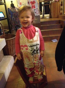 [de toute manière et contrairement à moi, je me refuse catégoriquement de lui coudre des vêtements de couleurs sombres, ma fille est un soleil à elle toute seule!]