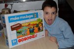 Y’à quelques jours, j’ai vu un reportage à la télé sur une petite dame qui a ressuscité la marque Mako Moulage. Quand j’ai vu les boites (que je n’avais pas encore vu dans les magasins) pleins de souvenirs me sont revenus en mémoire… La table carrelé dans la cuisine chez mes parents, les tabliers immondes (je t’aime Mounette), les cartons et en route pour l’activité assise à côté de mon frère! [oui vous l’aurez compris les activités manuelles, je tiens ça de ma mère], fin bref, j’ai surfé sur le web et j’ai commandé une boite pour voir si Louis allait accrocher…