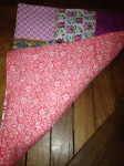 En plein rangement de mes tissus, j’ai fait le tri des chutes, les petites chutes, les grandes chutes, les moyennes chutes… J’ai coupé des carrés de même taille en me disant « ça servira bien hein »… Et pis au fil des coupures, j’ai voulu tester un truc de suite direct là comme ça (fin le soir quand même la journée je travaille!)