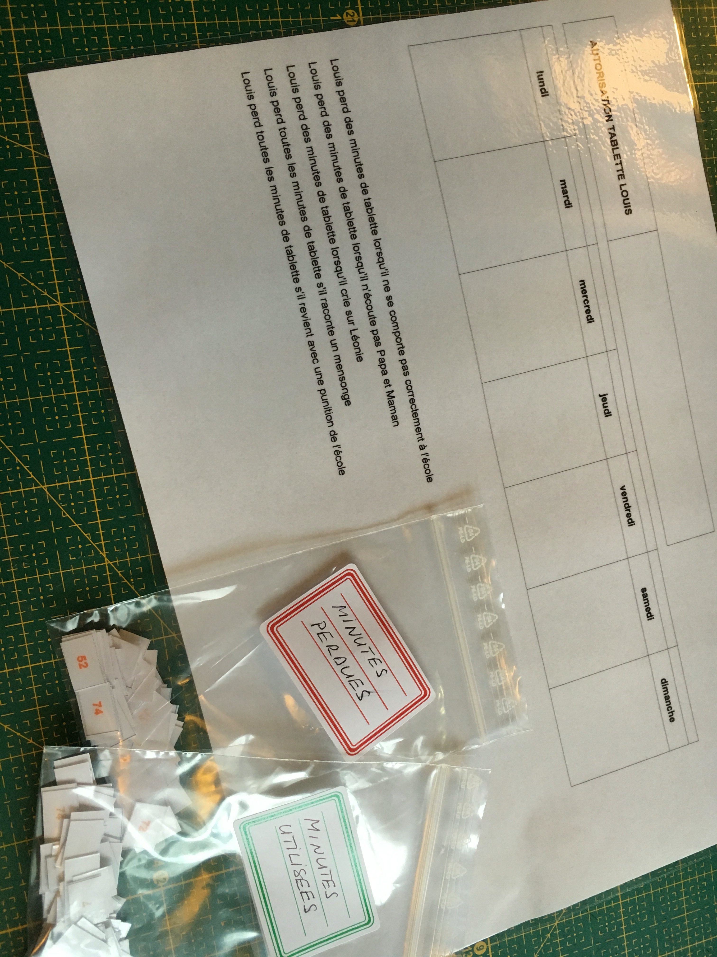 J’ai cherché un moyen de limiter l’utilisation sans que ça soit arbitraire de la part de l’adulte mais aussi nous créer un levier… Ouais je suis comme ça j’utilise la carotte et j’assume!