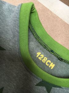 A la base, le pull avait une capuche, que j’ai grandement foiré, puisque même Léonie n’y passait pas la tête! Refus de ma part de jeter le tout, j’ai tout décousu (oh joie et bonheur quand le montage est fait à la surjeteuse) et j’ai remonté un col simple et basique. Je m’éclate toujours à flexer les tailles, d’ailleurs Louis s’occupe maintenant de me les préparer!