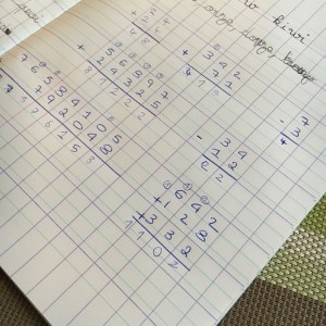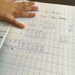 On a donc joué un peu avec les chiffres il adore ça… Additions en colonnes et avec retenues s’il vous plait hein
