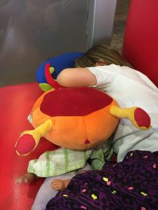 Les enfants profitent du vol en jouant (Merci Aéroflot au passage pour le puzzle), et en arrivant à Moscou pour Léonie c’est très compliqué… Elle plafonne à 40° et n’est pas au mieux de sa forme la poulette… elle s’endormira sur un canapé en vrac…
