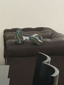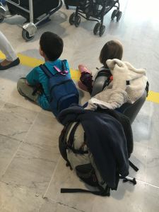 Arrivés à Roissy, on s’aperçoit que Léonie a de la fièvre -sinon s’pa drôle-, à vu de bouche je dirai un bon 39°, je dégaine le doliprane en stick (très bonne invention ça d’ailleurs) et nous voilà en train d’enregistrer les bagages…