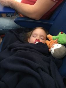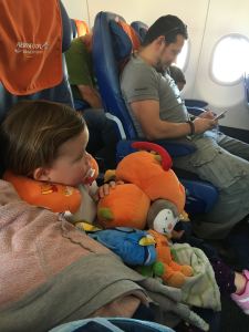 10h de vol avec Léonie sur moi, à moitié endormie / à moitié réveillée / pas bien / transpirante à grosse goûte…