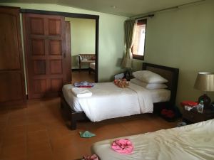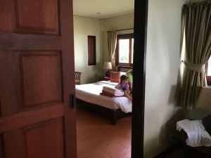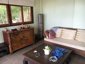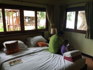 Après 45 minutes de voiture, nous arrivons enfin à destination. Cela ressemble en tout point aux photos que j’ai vu au préalable, et je dois dire qu’au premier coup d’oeil nous sommes ravis! Le bungalow est super grand pour 4, 2 salles de Bain (1 douche / 1 baignoire, 2 WC), un grand patio, le tout agrémenté de la clim, que demander de plus?
