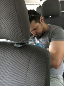 Notre voiture nous attends bien comme c’était prévu. Après quelques kilomètres, même si le paysage est magnifique tout le monde s’endort… Nous sommes partis Samedi 9 Juillet à 11h00 heure de Paris et nous sommes maintenant Dimanche 10 Juillet 12h40… La fatigue est bien là