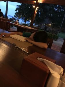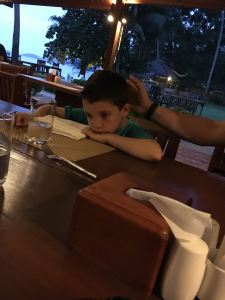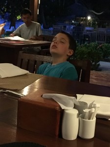L’après-midi s’est passée à la piscine et à la mer, et direction le restaurant pour le dîner pas trop tard car franchement nous sommes complètement claqués du voyage.