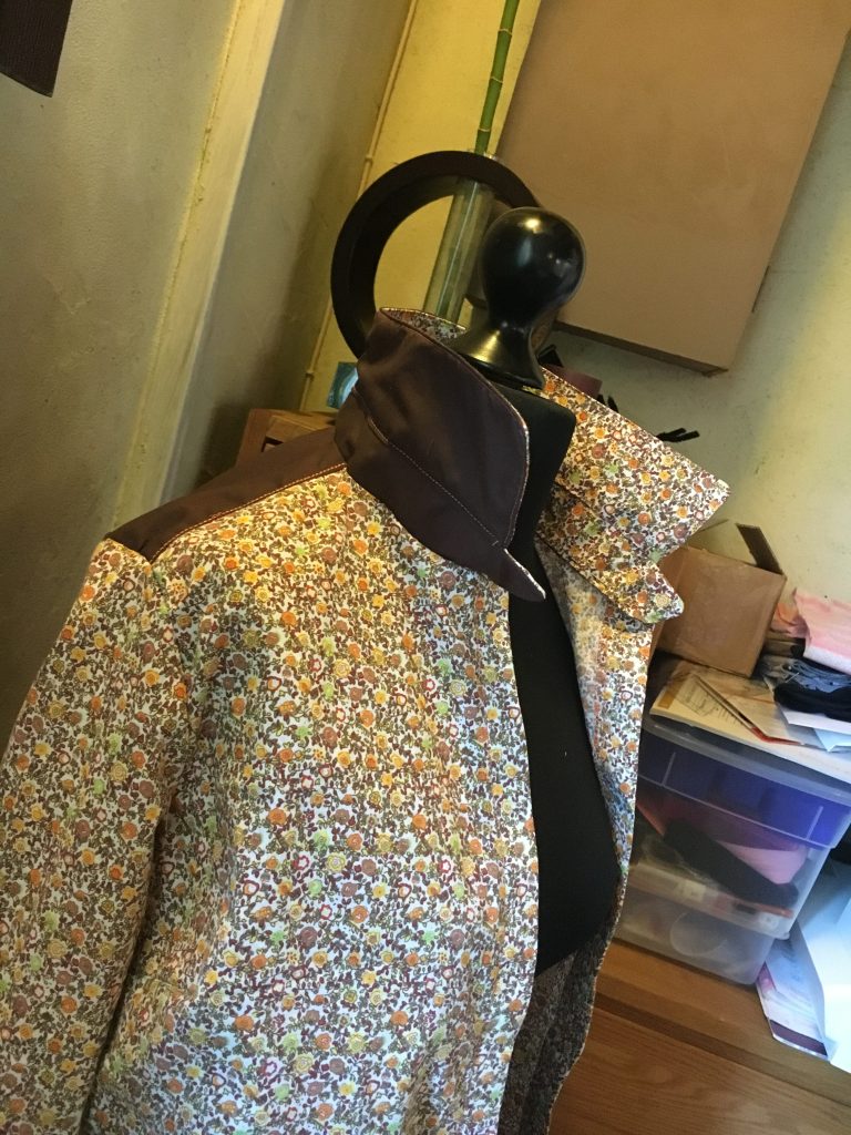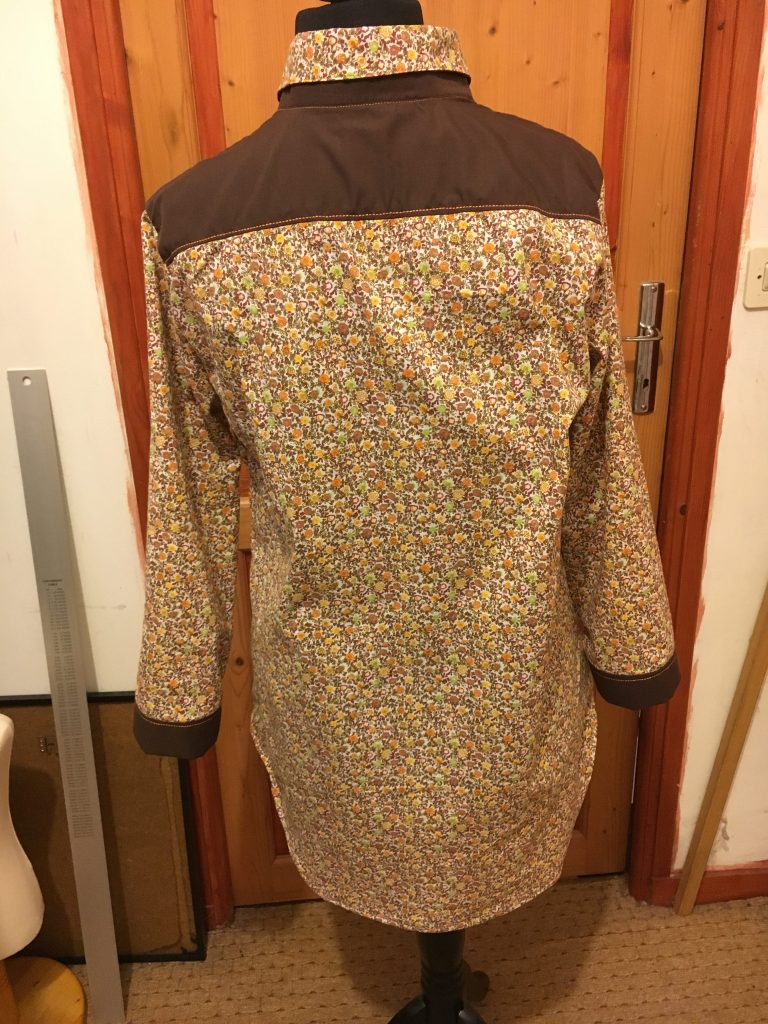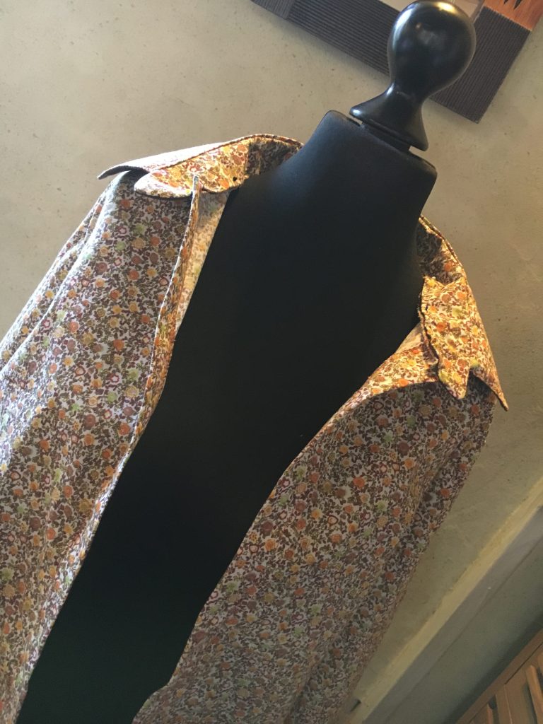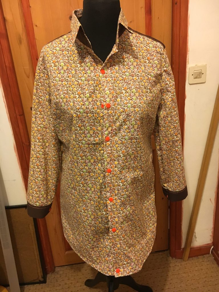 Oui donc tu as bien vu, une chemise / tunique / liquette pour moi… Une grande première, j’ai rien compris pour le montage du col et du pied de col (non mais tu savais toi qu’un col avait un pied?)… J’ai monté, démonté, recoupé, remonté, re-démonté bah oui hein… et pis je me suis dit zut allez on y va, on y croit, Huguette sort toi les doigts… (et je m’arrête là pour les rimes ça vaut mieux je crois…)