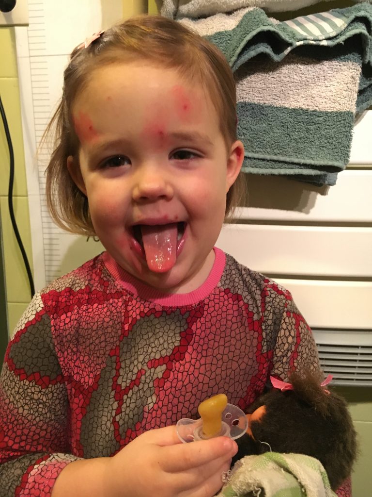 3 ans 1/2, scolarisation, tu chopes toutes les maladies des copains… dont la PAPICELLE… et oui encore dur à prononcer à 3 ans 1/2… 3 jours à la maison juste avant les vacances, c’est pas zuste parce qu’elle n’a pas pu dire au revoir aux copains avant le père-noel, mais elle a été au top! Maman devait absolument finir des dossiers avant d’être en congé et Papa en prime travaillait en décallé youhouhouhou!
