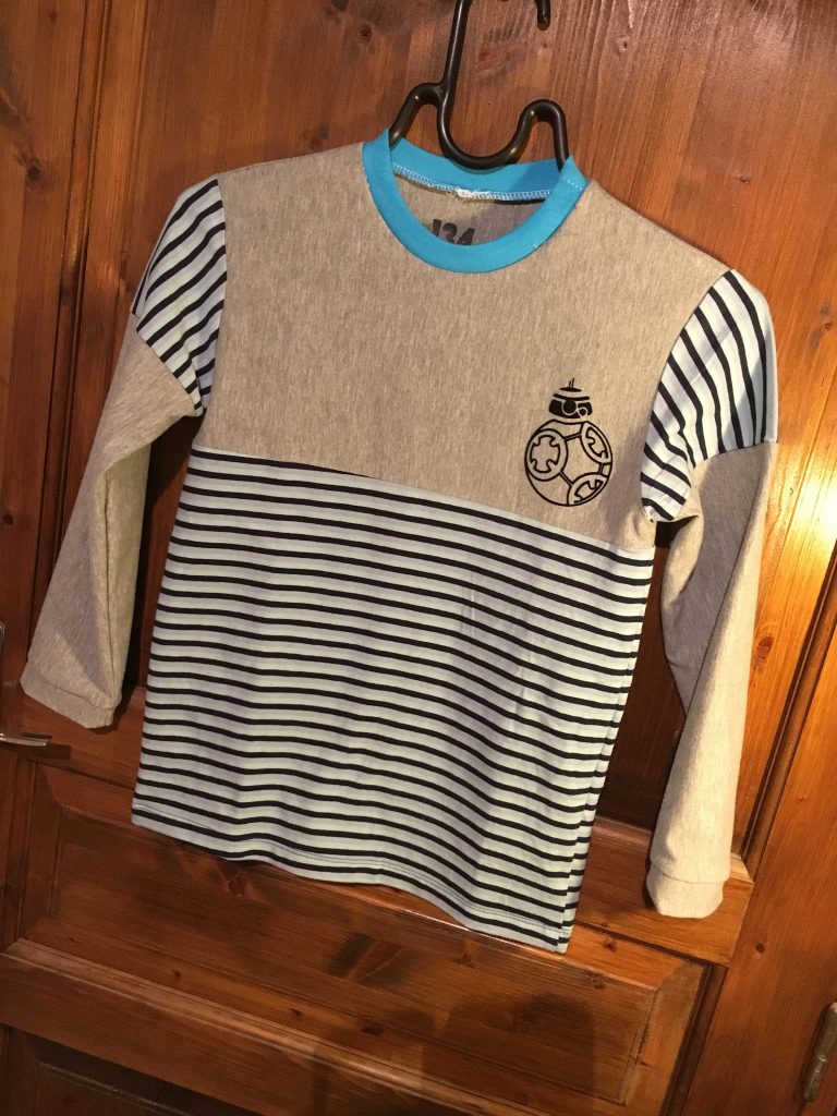 Bref, quand j’ai vu les découpes de ce tee shirt, ça a fait tilt! et franchement ça rend bien… Je me demande même si je vais pas en faire un modèle pour MrChouchou (lé plus grand, je passerai encore plus de tissus LOL)