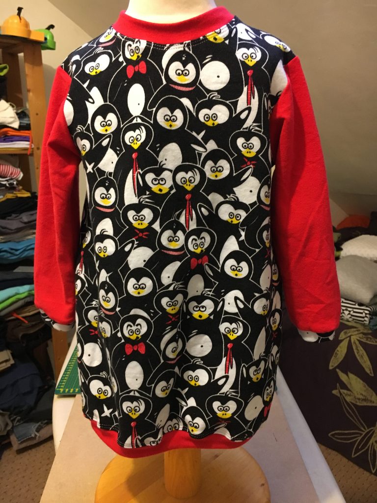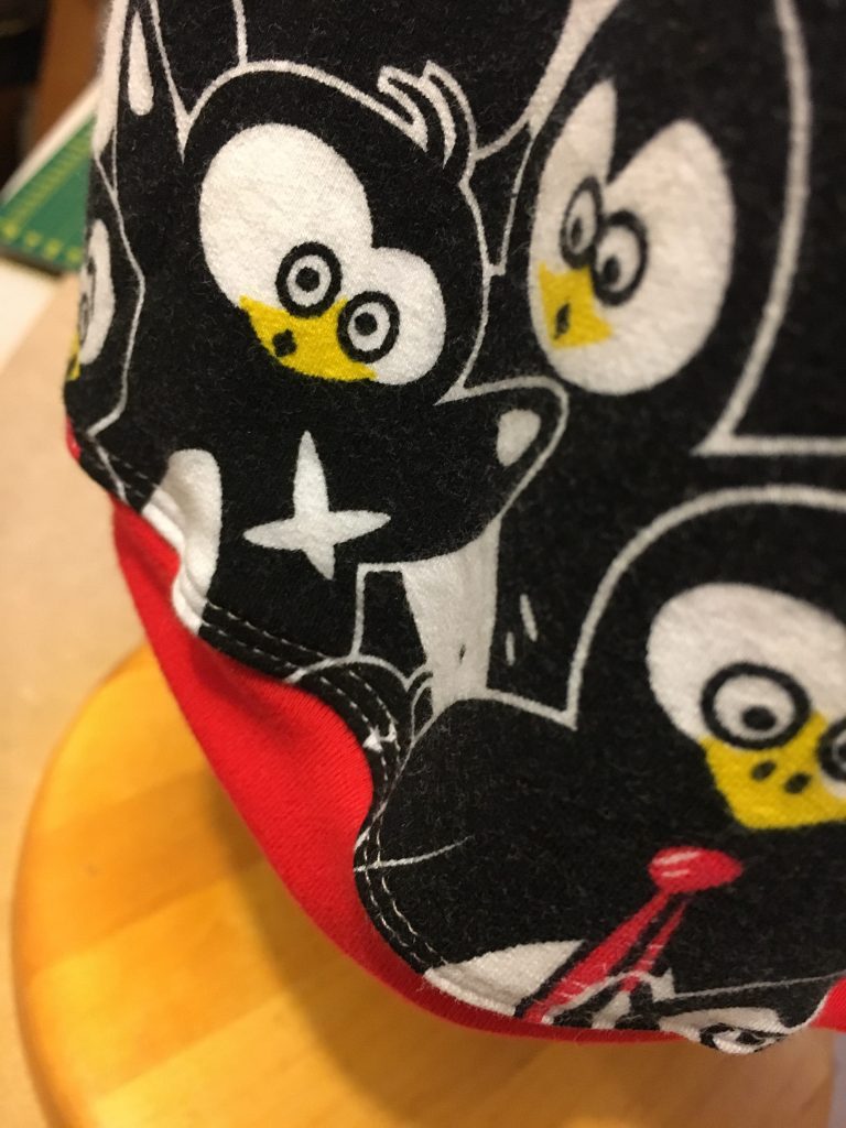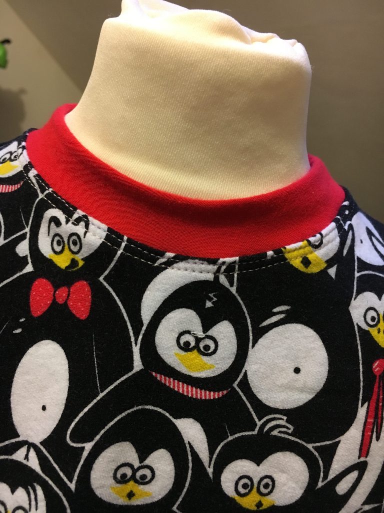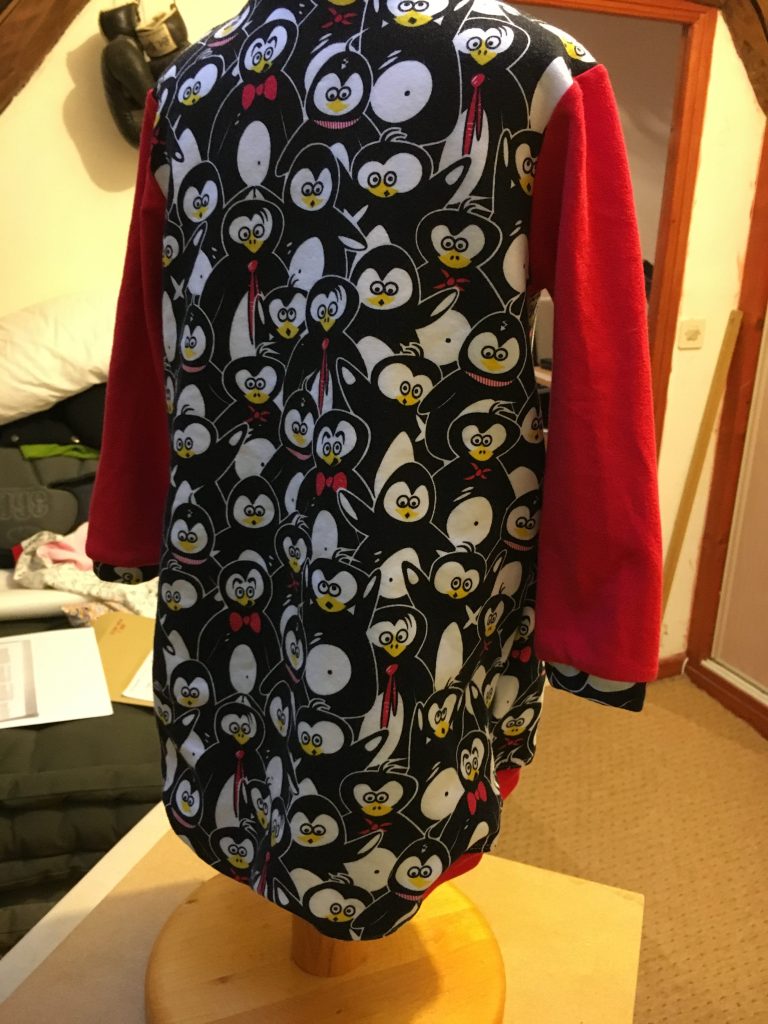 Quand elle a vu ce tissus dans ma dernière commande, elle s’est mise en boucle… « Maman tu couses les pingouins? » « Maman t’as cousu les pingouins? » ‘Maman ils sont où les pingouis?’ … De temps en temps, elle se met en mode « boucle relou, je répète la même chose 15 fois par jour jusqu’à avoir ce que je veux… »