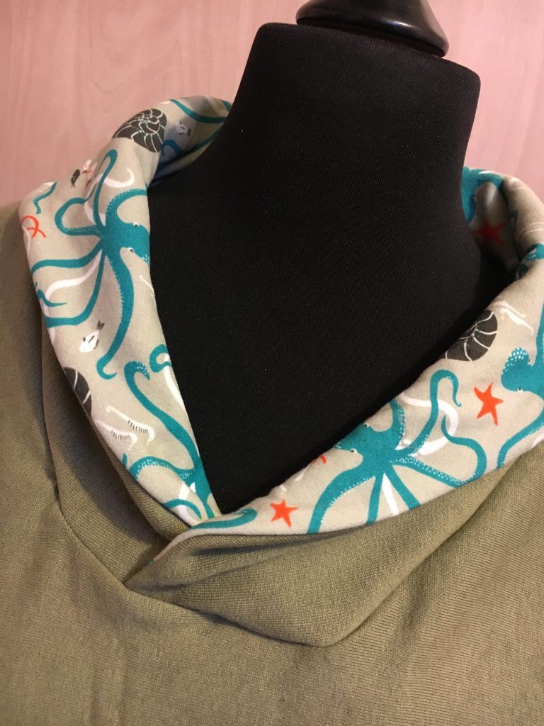Patron nommé « Mr Classique », super pratique car il a plein de déclinaison possible, de découpe au niveau du torse, modèle capuche, sans capuche, encolure normal… Bref vous en avez pour votre argent 🙂