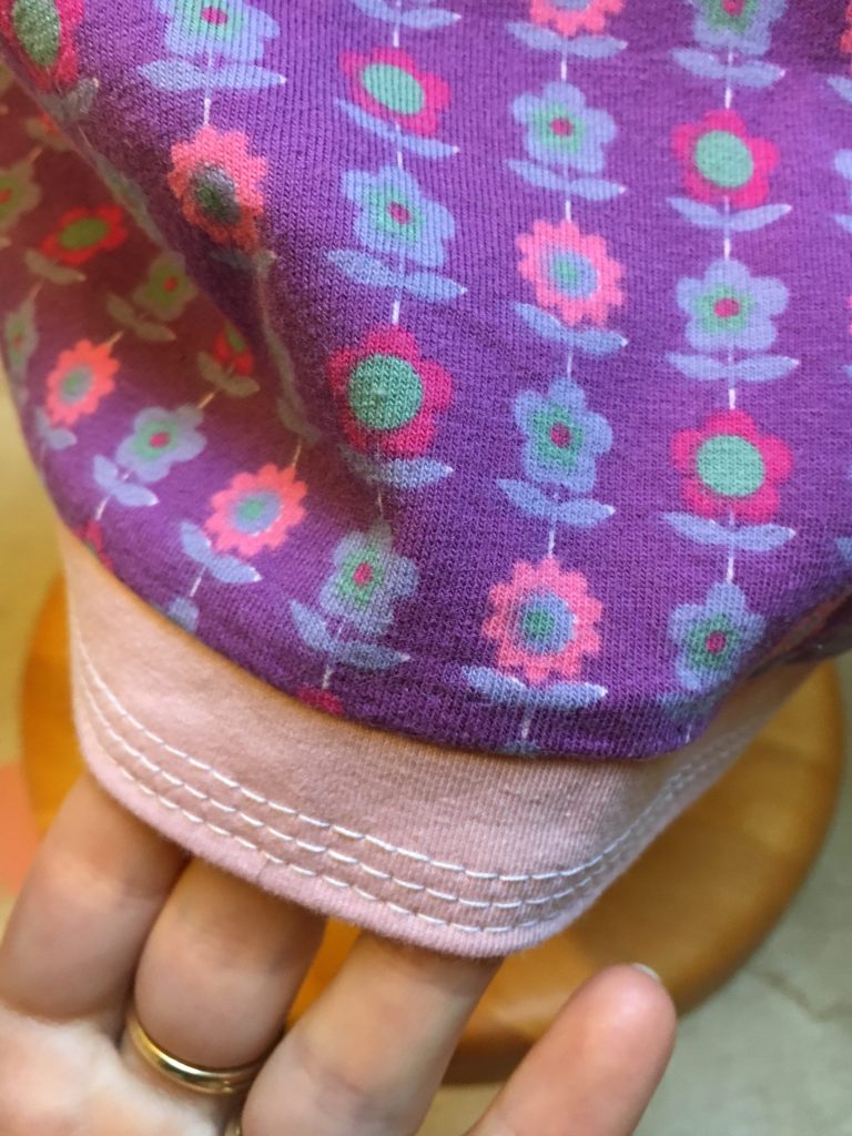 Vous reconnaissez le rose? celui de mon tee shirt? (à voir ICI vous suivez un peu oui?) J’ai donc rajouté une petite bande discrète en bas pour avoir la bonne longueur, et zou le tour est joué.
