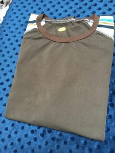 J’en avais déjà fait une version il y a quelques semaines, il le porte très régulièrement -fierté inside- J’ai réitéré avec en prime une recouvreuse hyper bien réglée (oui j’aurai mis un an quand même), le résultat est quand même vachement bien… Un tout petit défaut sur le col qui plisse un peu mais ça ne se voit pas porté 😉