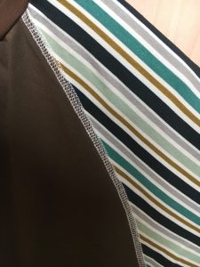 J’ai tout passé à la surjeteuse, et avant fermeture des côtés, à la recouvreuse en travaillant sur l’envers (je vous parle Chinois là je sais), c’est passé comme une lettre à la poste.