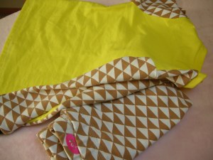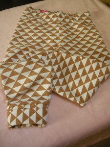 Lui il aime tout sauf les pantalons sarouals, sinon tout ce que je fais c’est « trop la classe Maman », donc je ne prenais pas trop de risque! J’ai tourné ma chute de jersey poulpe dans tous les sens pour faire rentrer le panneau devant et j’ai réussi…