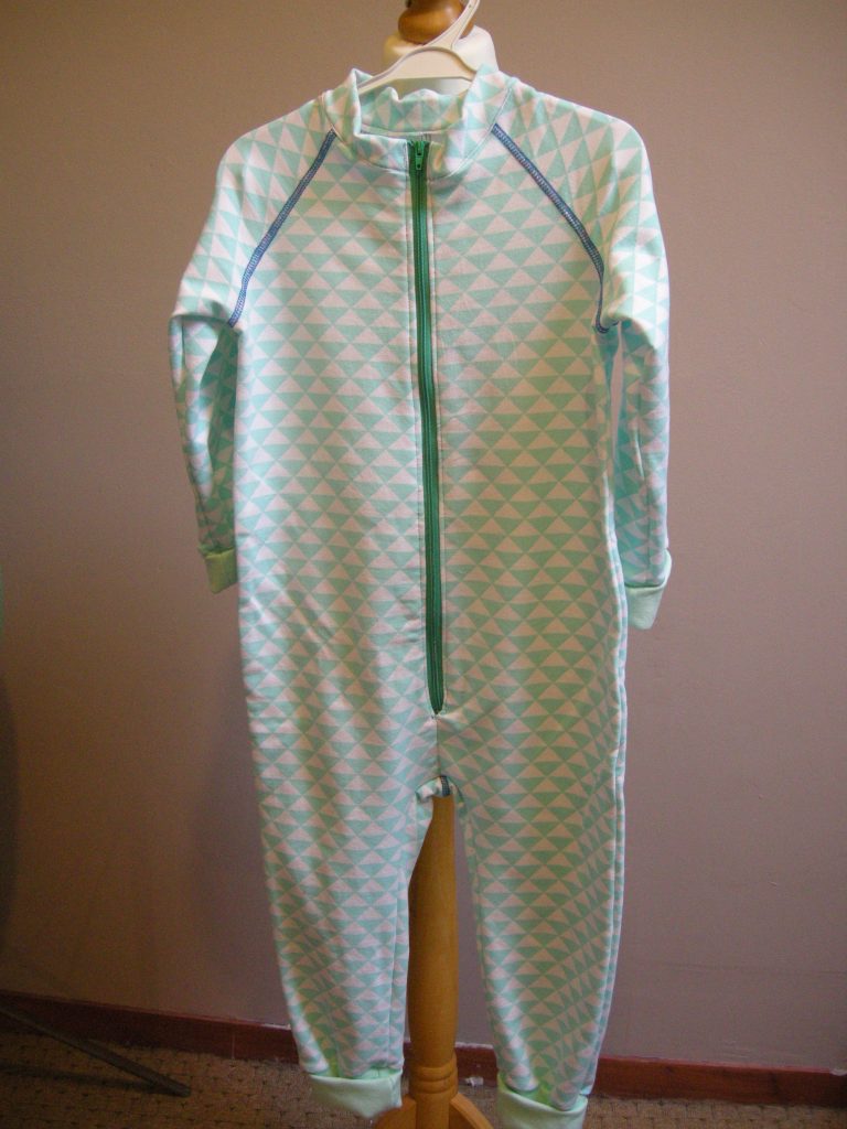 Ma boulette m’a demandé un pyjama complet, tu sais maman tu le mets en une fois, y’à pas deux morceaux… Bien Bien Bien… Me voilà parti dans une « grenouillère » pour Léonie… J’ai coupé en 110 cm pour son 104 habituel en espérant qu’elle puisse le mettre plus longtemps 😉