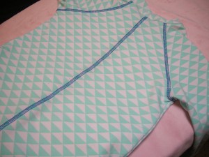 Pour ce modèle soyons fous, j’ai désenfilé ma recouvreuse pour tout mettre en bleu, j’aurai préféré du vert, mais j’avais pas cette couleur en stock, donc allons y pour le bleu… Moi qui pensais que j’allais peiner pour tout re-régler finalement cela s’est passé sans encombre!