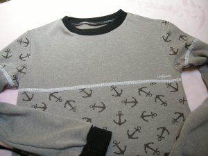 Il y a quelque semaines, j’ai fait un pyjama combi pour Léonie avec un super tissus sweat-douillette, quand je l’ai montré à Louis, il m’a dit « oh c’est très joli Maman, j’aime beaucoup le tissus… J’avais dû mal comprendre, je croyais qu’il était pour moi ce tissus là » Ah bah oui en fait tu as raison mon chaton j’avais dit que c’était pour toi pis en fait j’ai oublié…