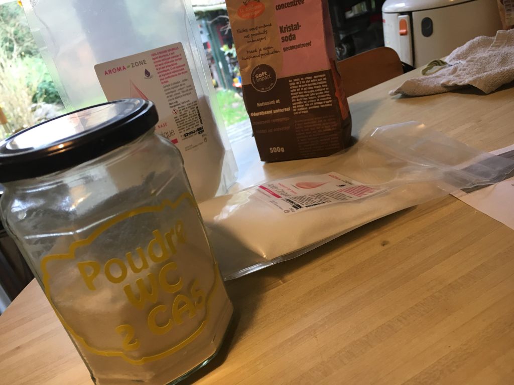 Nous avons passé une période fuiteS d’eau grandeur XXL, inondation dans la cuisine, dans les WC du bas (en même temps comme ça c’est mieux pour éponger…) et après les avoir réglées, nous voici à nouveau avec une fuite dans les WC du haut… Tout ça mène à réfléchir… Les canalisations étaient mal en point, bouchées pas complètement mais un peu quand même et finalement en y réfléchissant, on avait pas ces problèmes quand je faisais tous les produits moi-même… J’ai un peu lâché j’avoue… Un boulot, 2 enfants, la couture toussa toussa…
