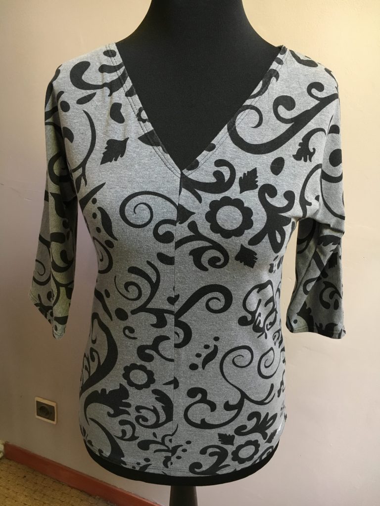 Un modèle rapide à faire, monté ce coup ci uniquement à la machine coudre et aiguille double, trop peur de rater la surpiqure du col V avec la recouvreuse!