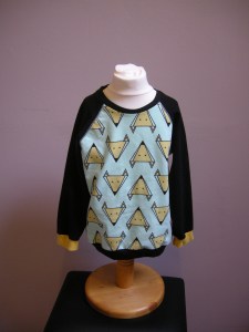 Comme je n’aime pas faire de jaloux, j’ai cousu dans le même temps un petit sweat tout simple pour sa petite soeur qui a le même âge que Léonie, en Taille 116cm, ils font des géants dans cette famille sérieux! (Pour Léonie je suis encore au 104cm… soit deux tailles de différences pour sa copine)