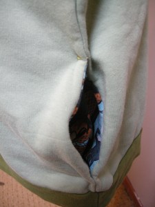 Je me suis juste permise une petite fantaisie au niveau des poches, j’ai mis des dinosaures à l’intérieur, c’est discret cela ne se voit pas et moi ça me fait passer des chutes de tissus LOL