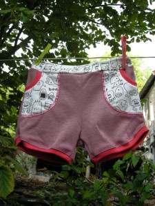 Le bermuda est un modèle que j’ai acheté sur le net et que je ne referai pas car à regarder de plus près j’aime pas du tout la coupe du machin… Bref il était découpé, donc je l’ai assemblé mais je ne reste pas persuadée qu’elle va le mettre