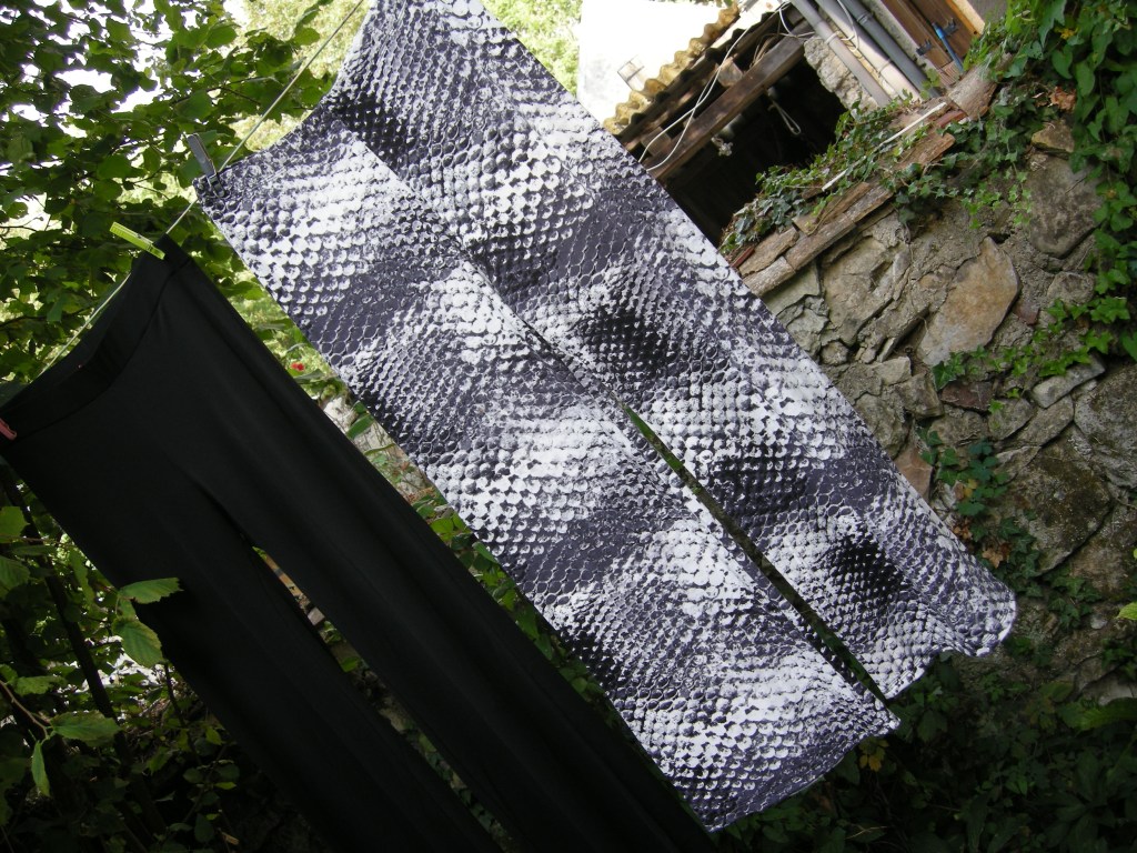 La reprise du patron n’a pas été très très compliquée mais il a fallu bien viser pour la fourche de l’entrejambe dos/devant… Le choix du tissus n’a pas été simple non plus même si je la connais quand même assez bien la Dame 🙂