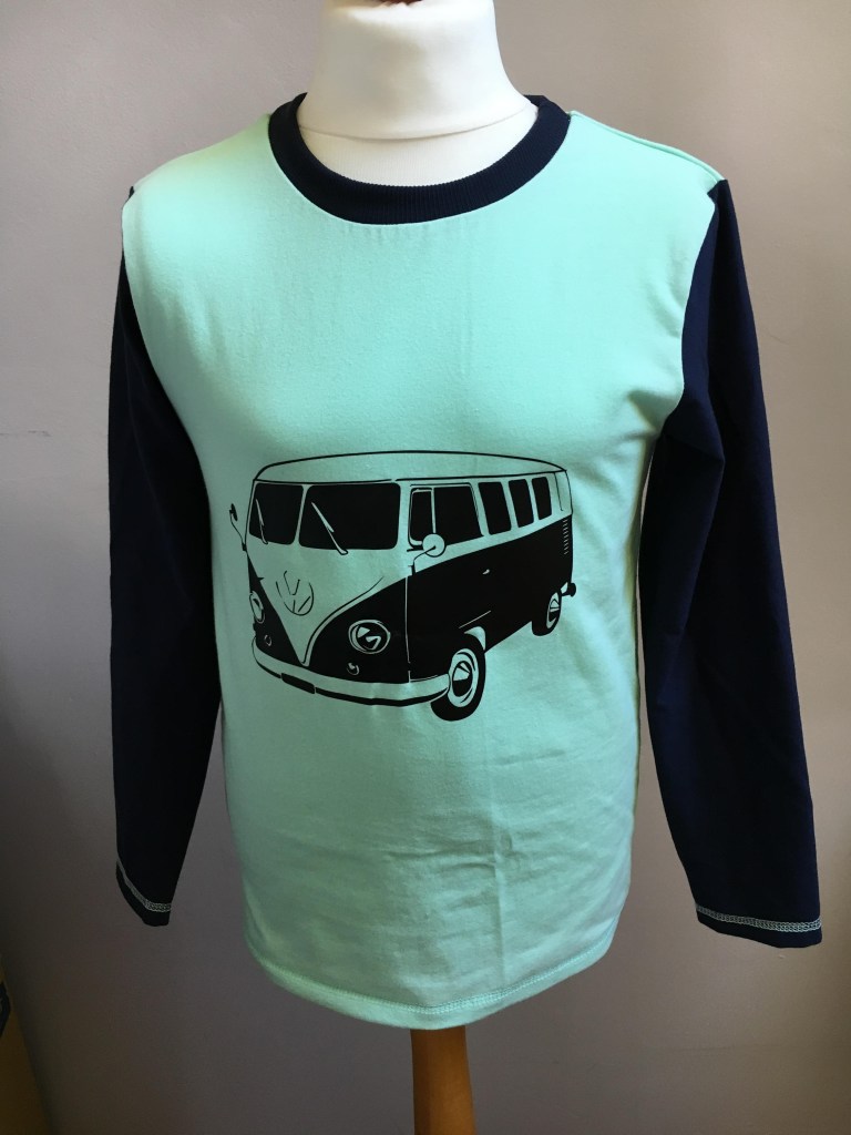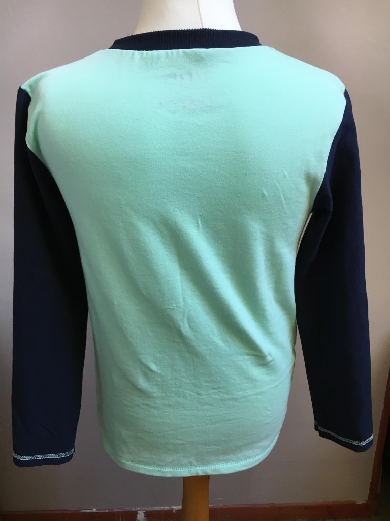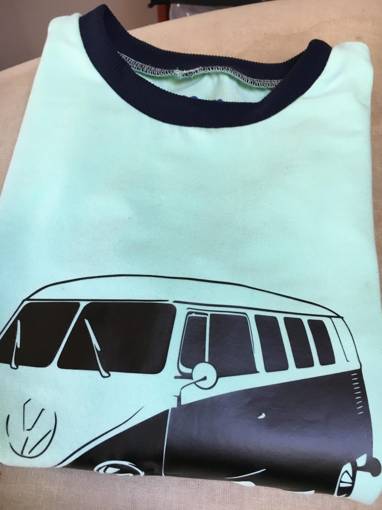 Il a donc choisi un Tee shirt manche longue tout simple, couleur vert d’eau pour le corps, et bleur marine pour les manches, très très passe partout du coup… trop trop passe partout… j’ai pris un risque, j’ai découpé un marquage sans le lui montrer avant… Ca passe ou ça casse comme on dit hein?