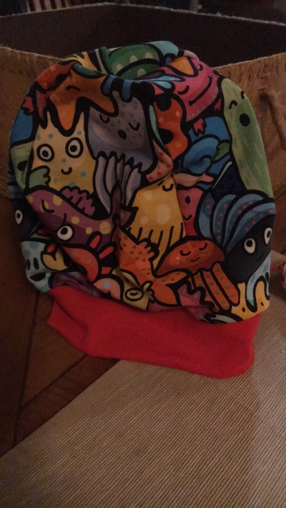 Le bonnet il le mettra mais en séparé 🙂 Avec le lunaire on doit être à 4 ou 5 bonnets par saison (perdu / oublié / troué et j’en passe!)