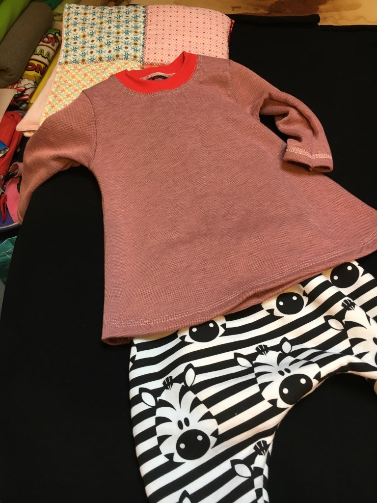 Hop hop pour ne pas être prise de court et comme je sais que ça sera une petite poulette, je m’y suis mise directement, un ensemble pour ses 1 an 🙂