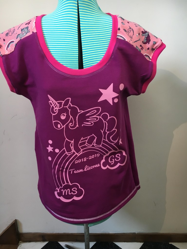 J’étais partie au départ juste sur un tee-shirt basique avec empiècements licornes, histoire de rigoler et de tenir mes engagements auprès de la boulette…