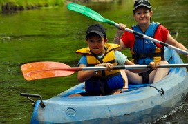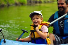 On a fait du Canoé-Kayak, c’était trop bien, quand c’est maman qui dirige on voit la faune et la flore de vachement prêt (ouais j’avoue le loulou a fini la tronche dans les ronces) et on fait tout en marche arrière c’était trop bien! Avec Papa c’est beaucoup plus « puriste » je dois dire 😉