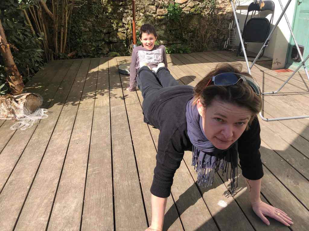 Comme si la grammaire, les mathématiques et l’art visuel n’étaient pas suffisant, la maitresse nous a envoyé un truc méga rigolo à faire avant le 8 Avril… Le défit SPORT…. non mais sérieusement…